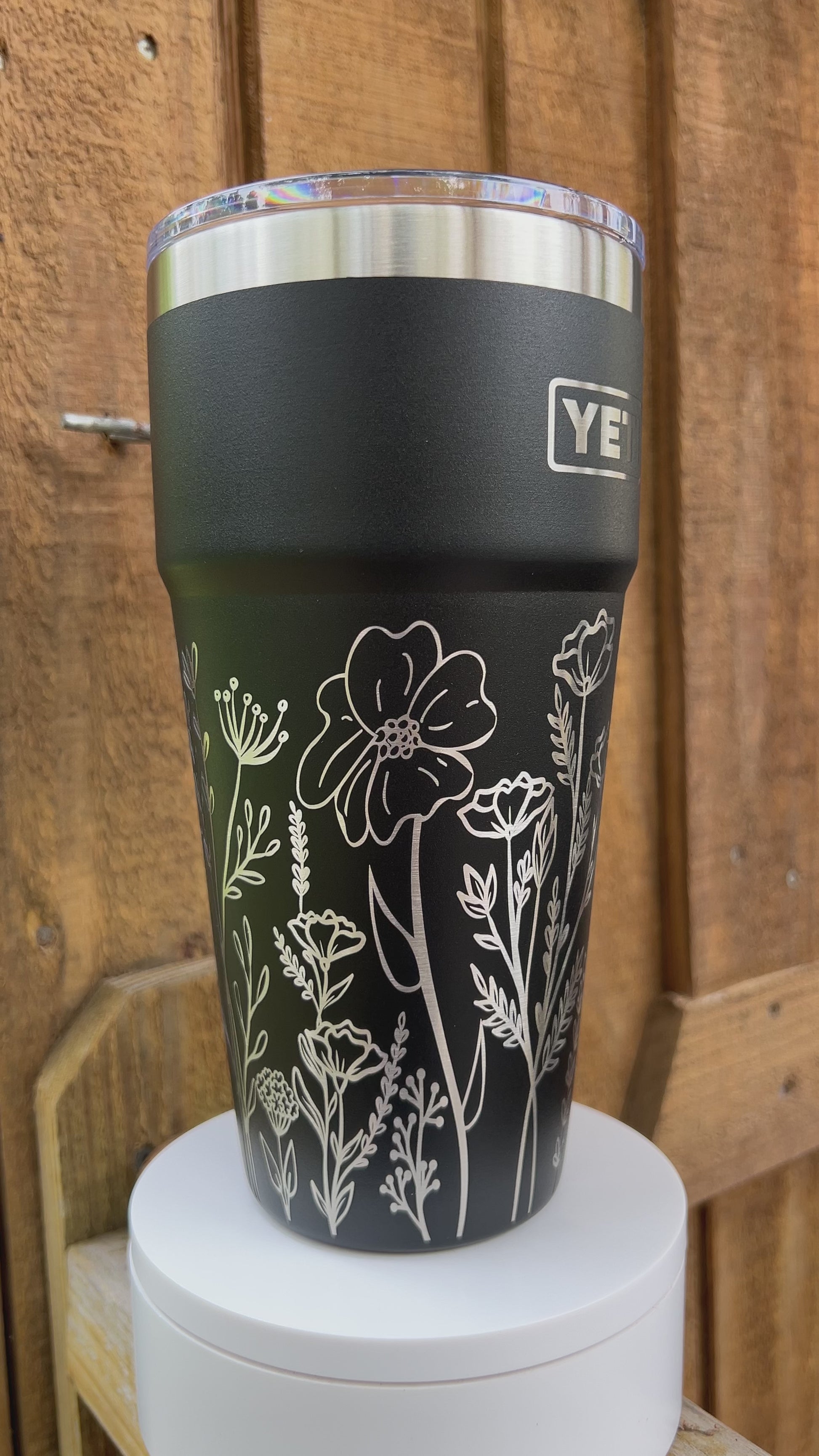 The Wildflower Yeti 30oz Rambler Stackable Cup is laser engraved and available in a variety of vivid colors. It is constructed to be durable and can be safely washed in the dishwasher. Each tumbler comes with original labeling, care instructions, and a sticker. Our expert engraving is followed by careful hand washing. This tumbler makes a great gift for occasions like Birthdays, Anniversaries, and Appreciation Gifts and much more.