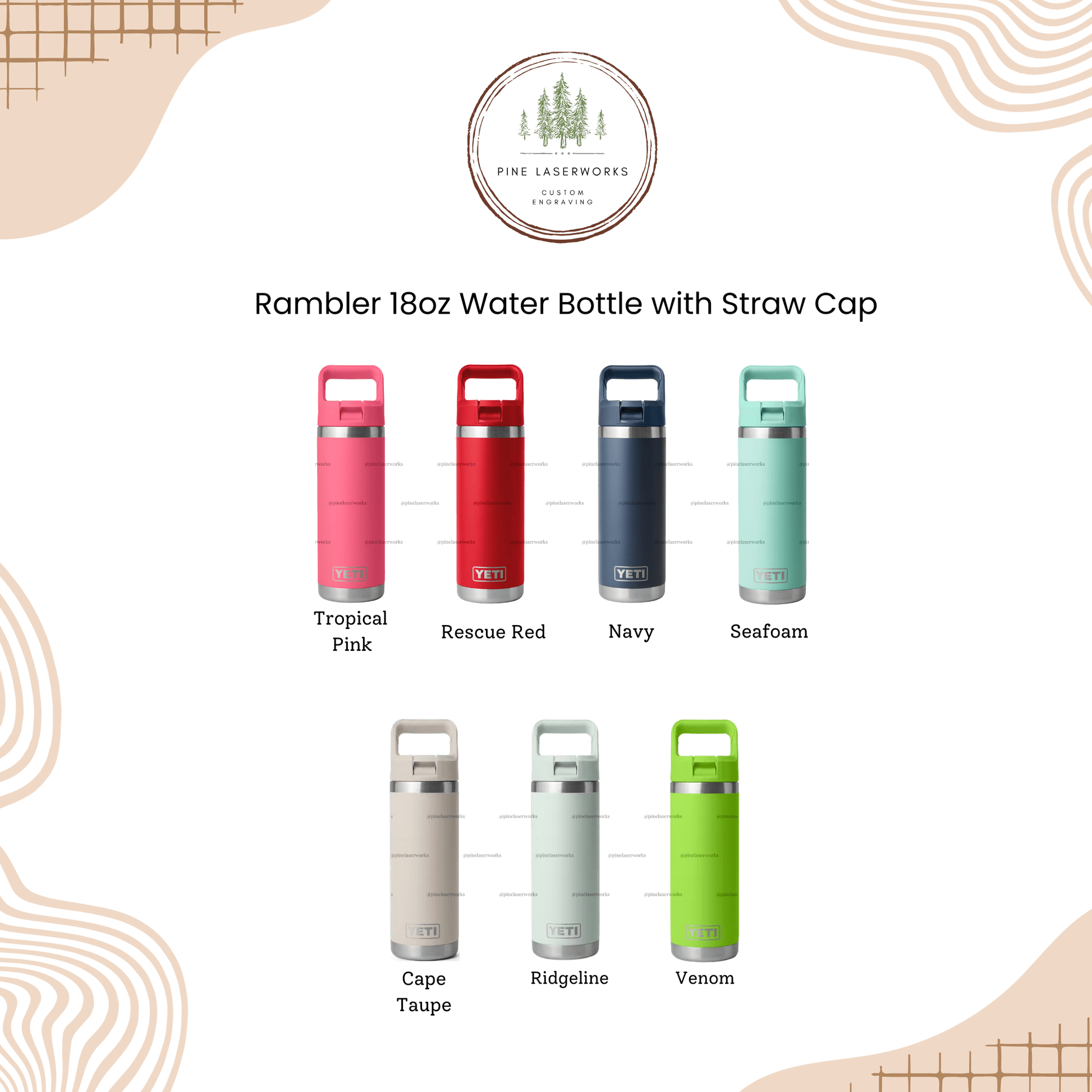 Highland Cow, Western Theme YETI 18 oz Rambler Straw Top Water Bottle. Several trendy colors to choose from.