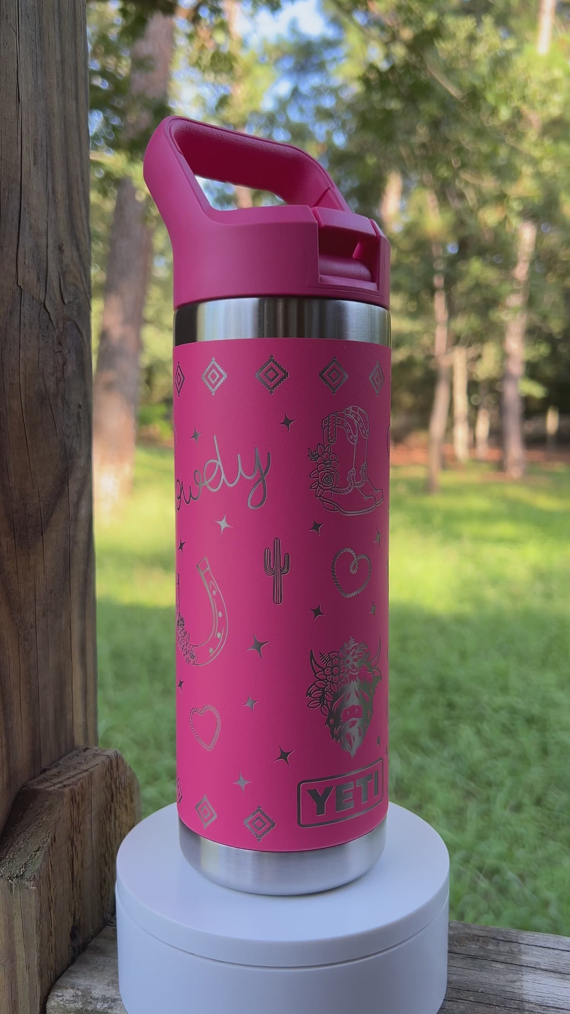 Highland Cow, Western Theme YETI 18 oz Rambler Straw Top Water Bottle. Several trendy colors to choose from.